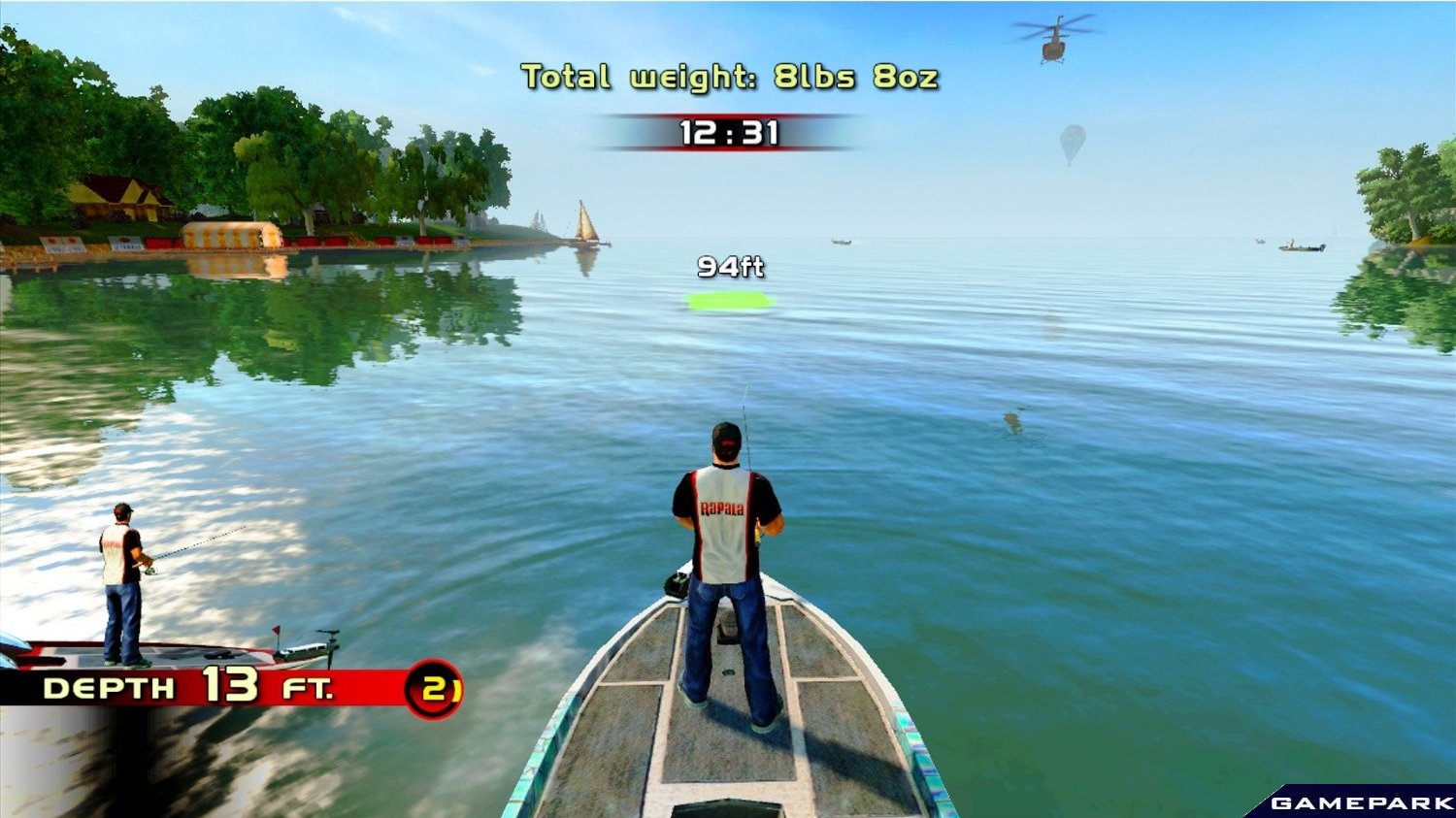 Всегда была возможность повернуть камеру в нужном направлении, просмотреть окружающее пространство, узнать таким образом где плавает рыба не сложно. Данная функция подводного наблюдения в Рапале напоминает эхолот, рыба в игре настроена на свое естественное поведение — улучшает тем самым представление рыбака о рыбьих повадках. Можно подбирать различные приманки, класса воблер, на каждую приманку своя рыба и уникальная проводка — иногда поддернуть нужно, или замедлить ход приманки, смотря по поведению рыбу, она бывает даже игнорирует её, если ваша «рыбка» ведёт себя не естественно, то ничего на неё не клюнет. Прикольно, что приманки и леска бесконечны, спиннинг вроде прочный, не ломается, крутая подвижная лодка, и красивые места — полный эффект присутствия. Игра отлично подходит рыбакам любящие ловить хищника на спиннинг. Конечно рыбалка виртуальная, все уловы отображаются графически на экране монитора, то-есть съесть рыбу не выйдет, да и в игре чисто спортивная рыбалка, где словил-запечатлел трофей-отпустил, и можешь продолжать или преждевременно закончить, если считаешь что победил в турнире. Турниры в игре разные, то нужно словить наибольшие рыбы, то по одной рыбе каждого вида, то самую мелкую рыбину, или крупную — на всё дается свое время. Турниры очень крутые, увлекательные. Помимо турниров можно играть и в простую рыбалку без времени, вам предлагают самые экзотические места, полную свободу действий: плывите куда хотите, ловите где душа пожелает. Может рыбалка с виду в Рапале про фишер смотрится не очень реально, порой рыба выплевывает крючка, рвет леску, слабнет леска при движении приманки, но тут главное сам процесс — проявление адреналина при поклевки, трофейная рыба.